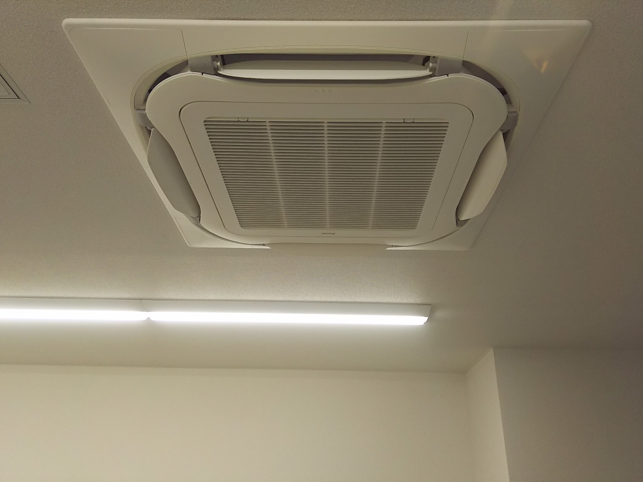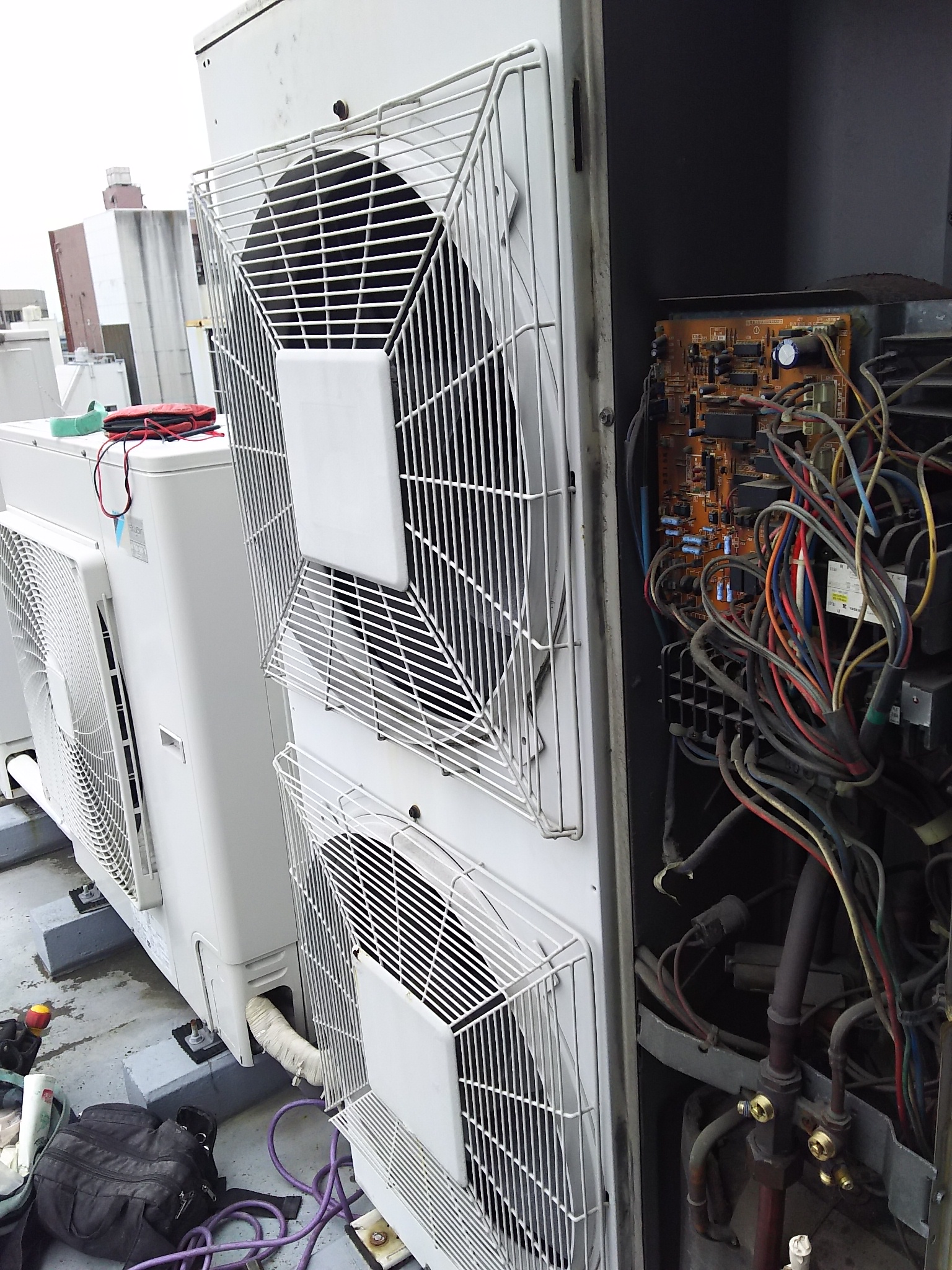 今回の工事は、室内機1階・室外機6階屋上でした。